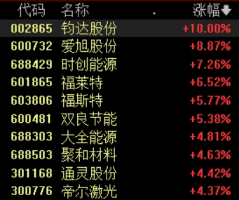 1月24日,光伏设备板块异动拉升,截至发稿,钧达股份涨停,爱旭股份大涨8%,时创能源涨7%,双良节能、禾望电气、福莱特等跟涨。